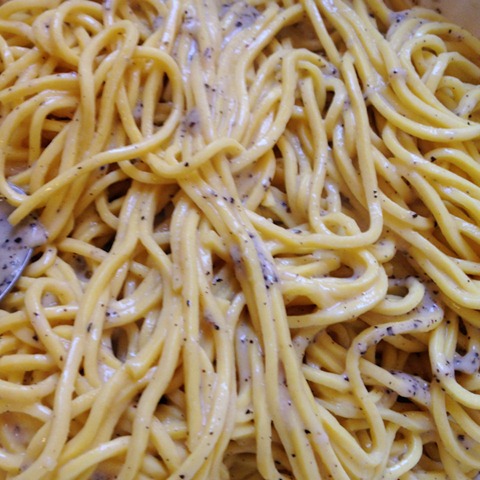 After that we picked up the most important ingredients of the day; black pepper, pecorino romano cheese and fresh hand made pasta before heading back to our apartment to cook.