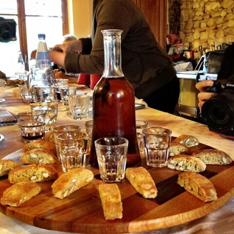 There was no short supply of red wine during the meal and then we finished off with the local digestive and some home made biscotti. The trick is to dip the biscotti in the alcohol to soften the biscuit and soak up the alcohol. It’s tasty but potent!